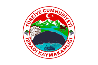 The flag of İbradı (photo) is white with the municipality's emblem in the center. "Belediyesi" means "Municipality".