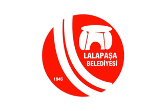 The flag of Lalapaşa is white with the municipality's emblem in the middle. "Belediyesi" means "Municipality".