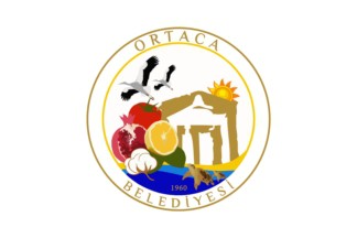 The flag of Ortaca is white with the municipality's emblem. "Belediyesi" means "Municipality".