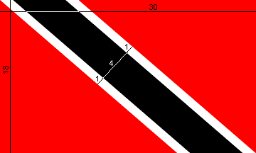 For Trinidad and Tobago: PMS 186 red and black. The vertical flag is simply the