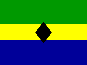 While I'm a bit skeptical about this being a Kingstown city flag (as opposed to interpreting the scribble on the hoist to mean, say, "I got this one in the Kingstown port"), the SV&G connection seems very likely, especially in the light of the post-1985 national flag with 3 such lozenges and of the blue-yellow-green chromatism in use for/in SV&G since at least 1967, with the three similar flags of/for the constituents of the British West Indies: Grenada, Saint Christopher, Nevis and Anguilla and Saint Vincent and the Grenadines itself - indeed the UFE at hand could be a simplified/alternate depiction of the latter flag: The same basic arrangement and a lozenge.