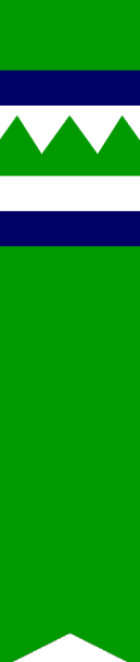 The same emblem appears in the upper portion of a long narrow swallow-tailed banner but the upper and lower blue areas are rendered as stripes, no shield shape. The background of the shield and the center of the emblem on the "bannerette" is white. The field color for general purposes is white. The flag's standard size is 4' x 6' while the "bannerette" is 9.5' x 2'. Residences and businesses were encouraged to fly this emblem during the week.