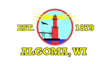 At http://www.algomacity.org/news_&_notices.html is stated "FLAGS - The City flag is now available in two sizes. The 3 x 5 is $45.00 and a small version in a 2 x 3 size is being offered for $35.00. Interested parties may stop at City Hall to purchase." In few photos at the homepage http://www.algomacity.org/ a seal on white is visible.