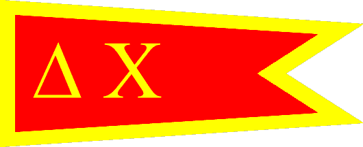 Delta Chi was formed at Cornell University in Ithaca, New York, in 1890. It flies a long swallowtailed pennant, red with the fraternity initials in yellow, all within a yellow border (officially buff).