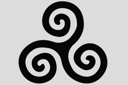 An originally mystical sign of ancient origin that consists of three symbols emanating from a central point, and of which the three-legged symbols on the flags of the Islands of Man and Sicily (for example) are almost certainly an adaptation – a trinacria or triskele.