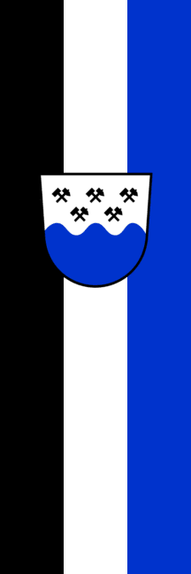 | Description of arms (German): | Im Wellenschnitt geteilter Schild, oben in Silber fünf 3:2 gestellte schwarze Bergbauzeichen (Schlegel und Eisen), unten blau. [1] [2] |