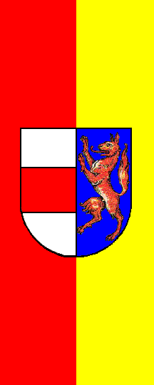 The flag of Sankt Pölten is vertical, vertically divided red-yellow with the coat of arms in the middle. The coat of arms is "per pale, silver a fess gules, azure a wolf proper".