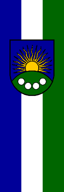 Description of flag: three stripes, blue-white-green, with coat-of-arms
