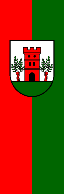 Description of arms (German): In Silber auf grünem Schildfuß ein roter, dreigeschossiger Turm mit schwarz geöffneter Pforte, zwei ebensolchen Fenstern im mittleren und zwei runden Schießlöchern im obersten Stockwerk sowie einer Wehr von drei Zinnen; rechts und links flankiert von je einem rotstämmigen, grün beblätterten Weidenbaum.