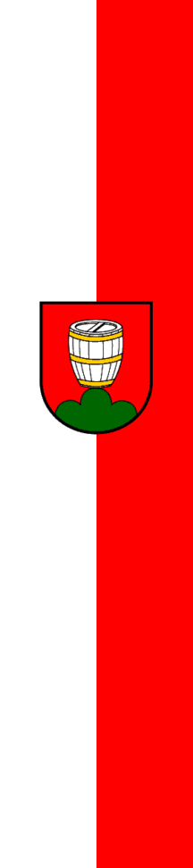 Description of arms (German): In Rot eine silberne, dreimal golden bereifte Kufe auf grünem Dreiberg. [1]