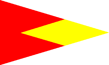 The KGWV burgee is made of two red triangles placed vertically along the hoist and a yellow lozenge. The lozenge does not reach the hoist of the burgee.