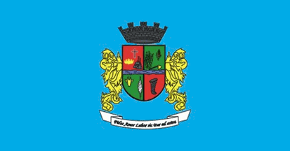 The flag is blue with the municipal arms in the middle. The coat of arms is