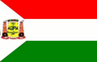 A horizontal tricolor, red-white-green, with a white triangle extending from the hoist bearing the municipal arms.