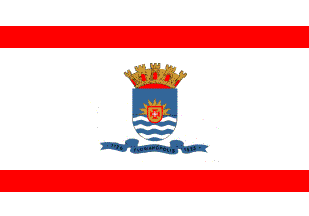 Dov Gutterman, translated by Jorge Candeias, 16 January 1999The flag of the Florianópolis municipality was created by law number 1409 of 17 March 1976, in the same year we were celebrating 250 years of political-administrative emancipation, for the purpose of symbolizing our municipality. Its characteristics are: a white rectangle, of 8 units by 11 units, cut by two red stripes, which are the colors of our state. These stripes are placed in the upper and lower extremities of the white rectangle, which has at the center the municipal coat of arms, created by law number 1408 of 15 March 1976, excluding the supporters of the shield.