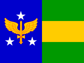 Brazilian Army, the four star rank. Hoist blue with winged sword and four stars arranged as in the Cruzeiro do