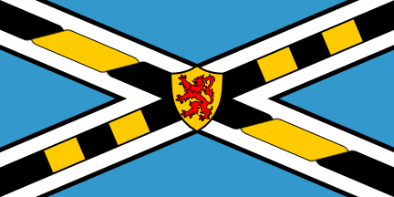 The blue and white satire with the smaller shield bearing the lion is representative of Scotland, from whence the early settlers came. The cable twist of gold and black symbolizes the first submarine cable in America, laid from Cape Tormentine, New Brunswick to Carleton Point in 1851. The opposite diagonal band represents the arrival of the railway to Borden in 1916.Source: Borden-Carleton website.