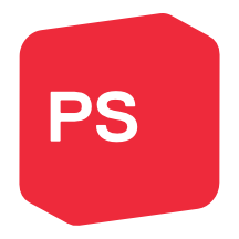 initials PS and a drawing of the rose-in-the-fist, separated with a vertical