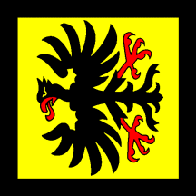 Or, a sable border, a lying gules nailed and tongued sable eagle.