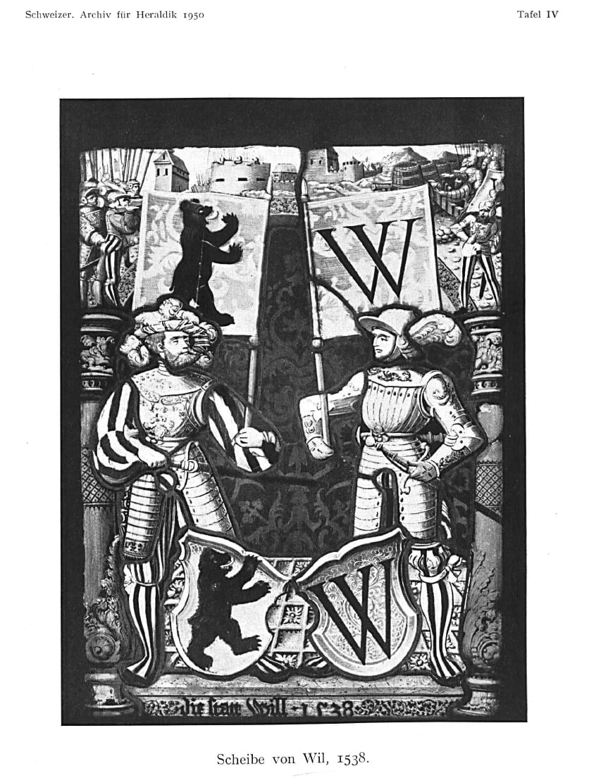 Per pale Argent a bear rampant Sable langued and viriled Gulles Sable in chief a snail shell Or and in base a W of the First.