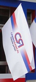 The flag is the logo (http://www.partidocambioradical.org/wp-content/uploads/2018/08/logo-Cambio-Radical-Standard.png) over a white background. The logo is the letters "C" and "R" in capitals, in red and white outline, symbolizing both of its tendencies (that is: Liberal and Conservative, which are its founding members).