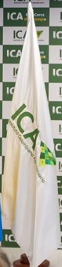 Its flag is a white horizontal background with the logo in the middle, reading its initials "ICA"; underneath being its name in Spanish; and to the side a depiction of an agricultural field, showing its area of study.