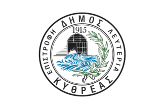 The flag of the municipality in exile of Kythrea (photo, photo, photo) is white with the municipality's emblem in the center.