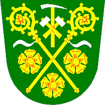 Coat of Arms: vert two croziers or in saltire with three flowers or and two mining