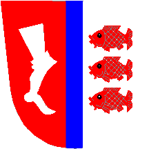 3:1:3; on red a knight's clad leg; on white three red fishes placed in