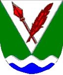 stříbrný klín a na něm zkřížený oštěp s brkovým perem, obojí červené.