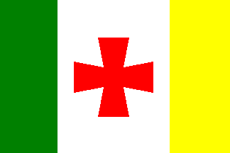 Flagdescription: three vertical stripes of re, blue and yellow, proportioned