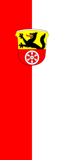 The wheel is alluding to the Archbishops of Mainz, rulers until 1803; the wolf probably to the Counts, later Dukes, of Nassau-Usingen, former rulers since 1803.