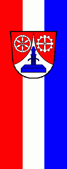 The tube well is a local landmark. It was first mentioned in 1611. The tinctures red and silver and the wheel are alluding to the Archbishopric of Mainz, which ruled the village between 1272 and 1803. The cogwheel is symbolising the local metal processing.