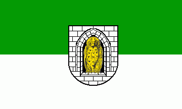 It is a green over white horizontal bicolour with centred arms.