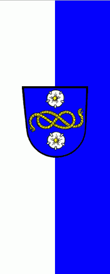 It is a white-blue vertical bicolour with arms shifted to top on a smaller Spanish shield (see left image above) or centred arms on bigger shield in pattern according to Max Reinhart (see right image above).