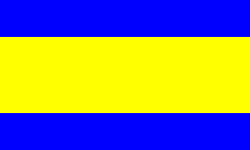 The flag's ratio is 3:5. It is a blue-yellow-blue horizontal triband with ratio of stripes 1:2:1.