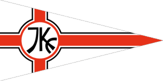 The vertical pennant is divided into white - red - white by converging lines. Shifted to the top in each stripe is a black initial, together the inscription is "KGE".