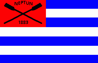 The 7-stripes flag was parted horizontally by alternating blue and white stripes, on red canton was a pair of black oars and a black embowed inscription "NEPTUN" at its top and "1883" at its bottom.