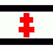 It was a white flag parted by two black horizontal stripes. Between the stripes was a centred red cross Lorraine.