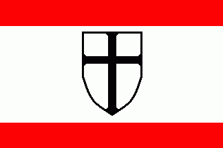 It was a white flag with red stripes at top and bottom. On centre was a white shield parted by a black Latin cross patty