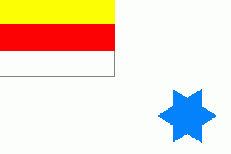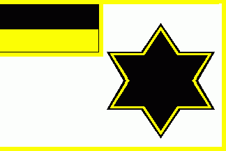 The flag was white fimbriated yellow, on canton was a black yellow horizontal bicolour with yellow edges inside. On fly was a black 6-point star cotized black-yellow.