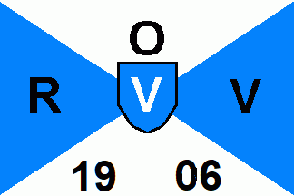 The flag was parted per saltire of blue and white with black inscriptions "ORV 1906" in order top-hoist-fly-bottom.