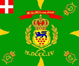 It bore the crowned royal cypher of King Christian 7 on each corner surrounded by a usually green wreath. It was the same for the 1st battalion of all infantry regiments.