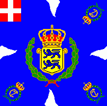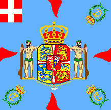 The king´s colour was a square version of the Danish national flag or Dannebrog, i.e. red parted by a centred white cross.