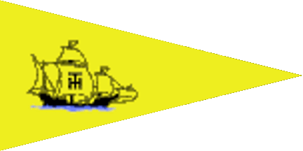 The first pennant (see left image above) is yellow with a black ancient ship heading to fly on a blue wave.