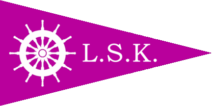 The pennant is purple with a white steering wheel at hoist and white derifed inscription "L.S.K." at fly.