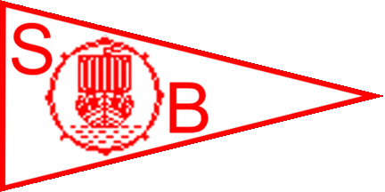 The pennant is white parted by a blue horizontal line, in upper hoist are blue initials "SB", in lower hoist two blue waves in pale.