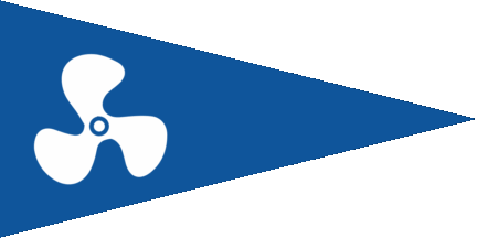 The pennant is blue. Shifted to hoist is a white ship propeller.