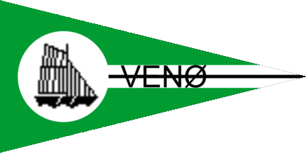 On hoist is a black viking ship with sail vertically parted black-white-black and white initials "VM".