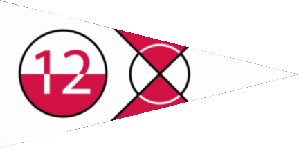The 2nd pennant (see right image above) is white with a disc horizontally parted of white and red with a number "12" in counterchanged colours, surrounded by a thin black annulet.