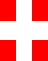 is "Orlogsflaget er et splitflag af dyprod farve med hvdit kors".